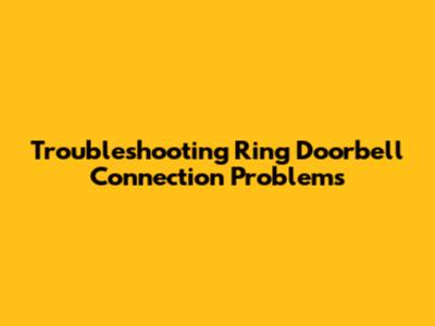 Troubleshooting Ring Doorbell Connection Problems