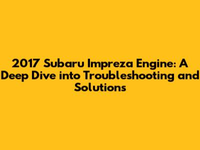 Solutions and Repairs for 2017 Subaru Impreza Engine Issues
