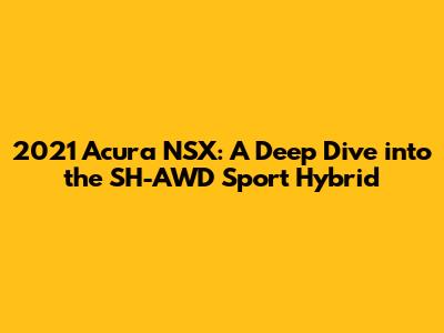 Hey guys! Let's dive deep into the 2021 Acura NSX SH-AWD Sport Hybrid. This isn't just any sports car; it's a technological marvel, blending blistering performance with hybrid efficiency. We're going to explore everything from its engine and drivetrain to its interior and technology. Buckle up, because we're about to take a thrilling ride through what makes this car so special. This guide will help you to understand everything about this unique car, so you can make informed decisions or just appreciate the engineering that went into it. The 2021 Acura NSX is a second-generation supercar, building on the legacy of its iconic predecessor while incorporating cutting-edge hybrid technology. Its design and engineering are a testament to Acura's commitment to innovation and performance. The NSX represents a pinnacle of engineering, showcasing Acura's ability to blend high-performance capabilities with advanced technology. This article aims to provide a comprehensive overview of the 2021 Acura NSX, covering its key features, performance attributes, and technological advancements. So, if you're curious about this amazing machine, you've come to the right place!