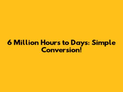 Hey guys! Ever wondered how many days are in a whopping 6 million hours? It sounds like a lot, right? Well, let's break it down and figure it out together. This article will guide you through the simple conversion process, so you can easily understand how to transform hours into days. Understanding time conversions like this can be super useful in various situations, from planning long projects to simply satisfying your curiosity. So, let's dive in and make sense of this big number!