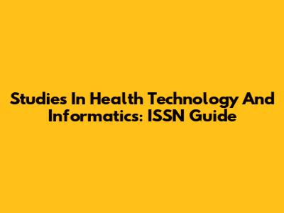 Studies In Health Technology And Informatics: ISSN Guide