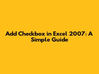 Hey guys! Ever wanted to make your Excel 2007 spreadsheets more interactive? Adding checkboxes can be a game-changer, making it super easy to track tasks, manage lists, or create interactive forms. In this guide, we'll walk you through the step-by-step process of adding checkboxes in Excel 2007, ensuring you can enhance your spreadsheets like a pro.