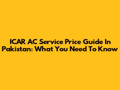 ICAR AC Service Price Guide In Pakistan: What You Need To Know
