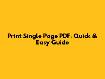Print Single Page PDF: Quick & Easy Guide