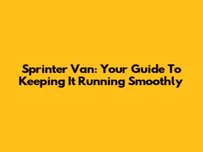 Sprinter Van: Your Guide To Keeping It Running Smoothly