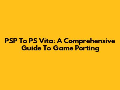 PSP To PS Vita: A Comprehensive Guide To Game Porting