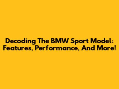 Decoding The BMW Sport Model: Features, Performance, And More!