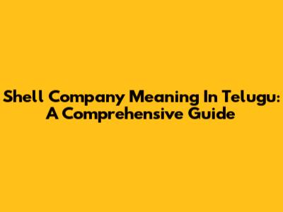 Shell Company Meaning In Telugu: A Comprehensive Guide
