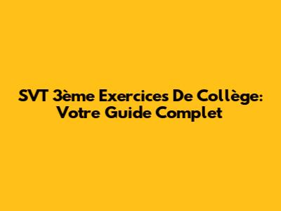 SVT 3ème Exercices De Collège: Votre Guide Complet