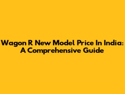 Wagon R New Model Price In India: A Comprehensive Guide