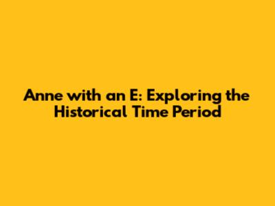Understanding the historical time period of "Anne with an E" is crucial for several reasons. First, it provides context for the characters' actions and motivations. By understanding the social norms, economic conditions, and political issues of the late 19th century, we can better appreciate the challenges and opportunities that Anne and her community faced.