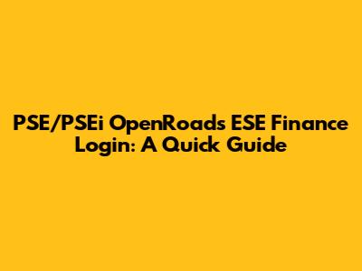 PSE/PSEi OpenRoads ESE Finance Login: A Quick Guide
