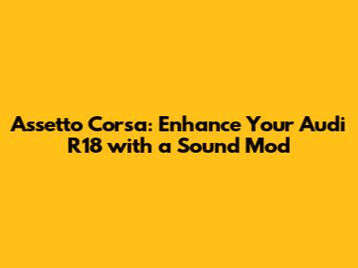 Are you ready to rev up your Assetto Corsa experience with the iconic Audi R18? One of the most exhilarating ways to deepen your immersion is by installing a high-quality sound mod. In this article, we'll dive deep into the world of Assetto Corsa sound mods, specifically focusing on how to enhance your Audi R18 with realistic and captivating audio. Let's get started and transform your virtual racing sessions into an adrenaline-pumping adventure!