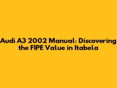 Hey guys! Are you curious about the FIPE value of an Audi A3 2002 manual in Itabela? You've come to the right place! This article dives deep into everything you need to know about determining the FIPE value, understanding what influences it, and how to get the most accurate information for your potential purchase or sale. Let's get started and unravel all the details about this classic car.