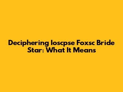 Deciphering Ioscpse Foxsc Bride Star: What It Means