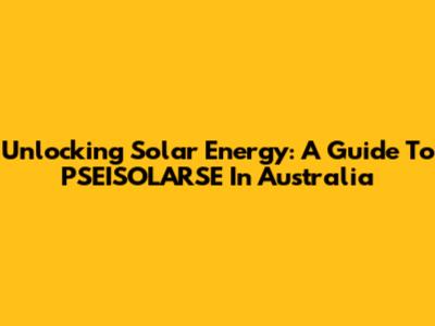 Unlocking Solar Energy: A Guide To PSEISOLARSE In Australia