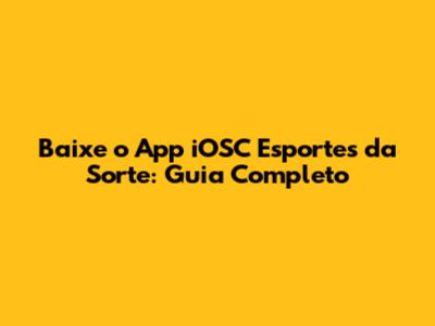 Olá, pessoal! Se você é fã de apostas esportivas e está sempre em busca das melhores plataformas, com certeza já ouviu falar da Esportes da Sorte. E para quem usa iPhone ou iPad, a boa notícia é que existe um app iOS super prático para você fazer suas apostas de onde estiver. Neste guia completo, vamos te mostrar tudo o que você precisa saber para baixar o app iOSC Esportes da Sorte, desde o passo a passo da instalação até as dicas para aproveitar ao máximo essa experiência. Bora lá?