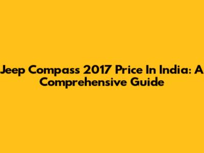 Jeep Compass 2017 Price In India: A Comprehensive Guide