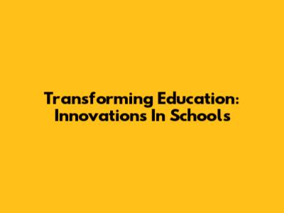 Transforming Education: Innovations In Schools