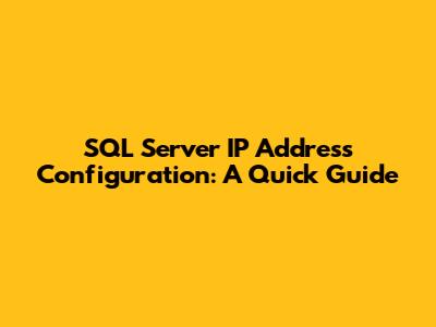 SQL Server IP Address Configuration: A Quick Guide