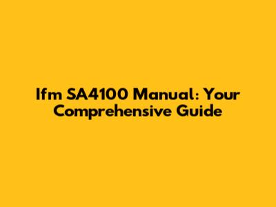 Ifm SA4100 Manual: Your Comprehensive Guide