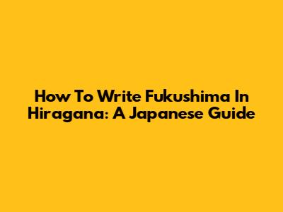 How To Write Fukushima In Hiragana: A Japanese Guide