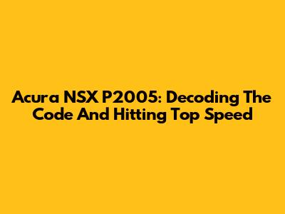 Acura NSX P2005: Decoding The Code And Hitting Top Speed