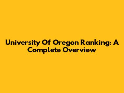 University Of Oregon Ranking: A Complete Overview