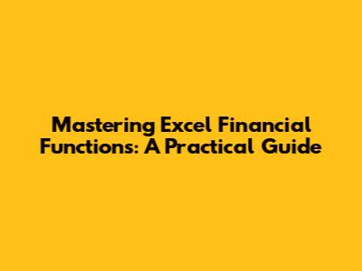 Mastering Excel Financial Functions: A Practical Guide