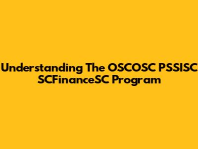 Understanding The OSCOSC PSSISC SCFinanceSC Program
