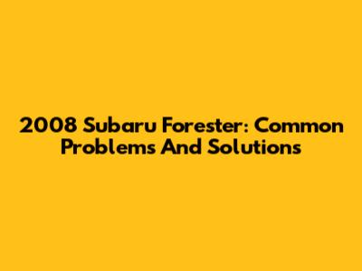 2008 Subaru Forester: Common Problems And Solutions