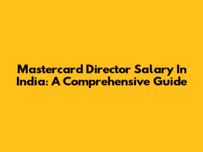 Mastercard Director Salary In India: A Comprehensive Guide