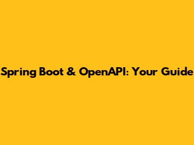 Spring Boot & OpenAPI: Your Guide