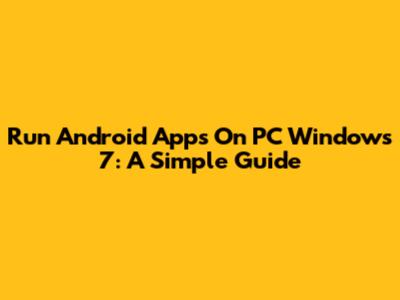 Run Android Apps On PC Windows 7: A Simple Guide