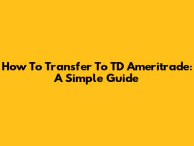 How To Transfer To TD Ameritrade: A Simple Guide