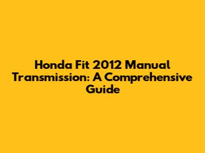Honda Fit 2012 Manual Transmission: A Comprehensive Guide