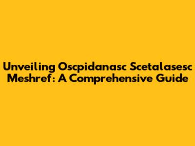 Unveiling Oscpidanasc Scetalasesc Meshref: A Comprehensive Guide