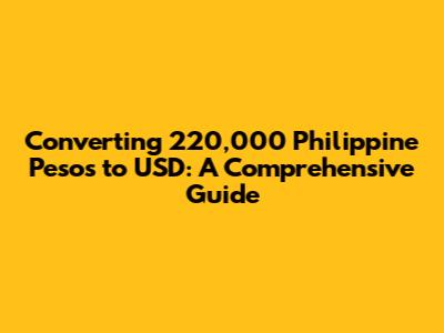 Hey everyone! Today, we're diving into the world of currency conversion, specifically looking at how to convert 220,000 Philippine Pesos (PHP) to United States Dollars (USD). This is a pretty common query, whether you're planning a trip, managing finances, or just curious about the current exchange rates. So, let's break it down in a way that's easy to understand. We'll cover everything from the current exchange rates to the best ways to convert your money. Keep in mind that exchange rates fluctuate, so what we discuss today is accurate at the time of writing but might change. Always double-check the latest rates before making any transactions. Let's get started!