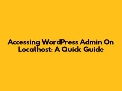 Accessing WordPress Admin On Localhost: A Quick Guide