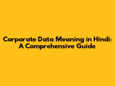 Hey everyone! Ever wondered about corporate data and what it means, especially in the context of Hindi? Well, you're in the right place! We're going to dive deep and unpack everything you need to know about this crucial aspect of the business world. This article will break down the meaning of corporate data in Hindi, explain its importance, explore various types, and give you a solid understanding of how it's used. Buckle up, because we're about to embark on a journey to demystify corporate data!