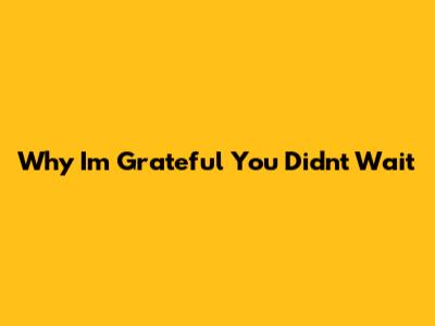 Why I'm Grateful You Didn't Wait