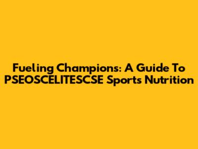 Fueling Champions: A Guide To PSEOSCELITESCSE Sports Nutrition