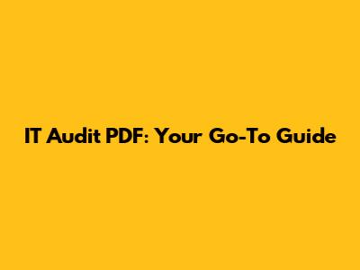 IT Audit PDF: Your Go-To Guide