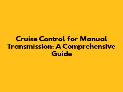 Cruise Control with Manual Transmission: How Does It Work?