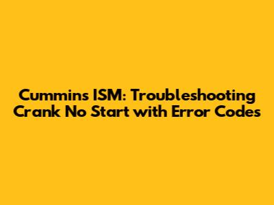 Here are some practical solutions and tips to help you resolve a Cummins ISM crank no start issue: