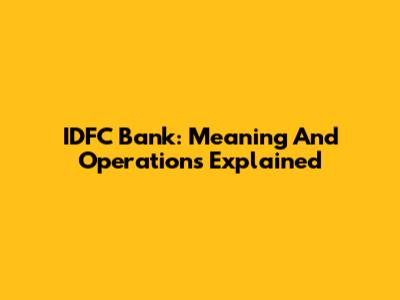 IDFC Bank: Meaning And Operations Explained