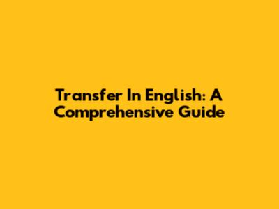 Transfer In English: A Comprehensive Guide