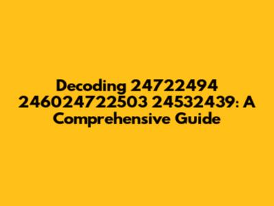 Next up is 246024722503, a longer sequence that likely carries more specific information. The increased length suggests that it might be a unique identifier within a larger system. Here are some potential interpretations: