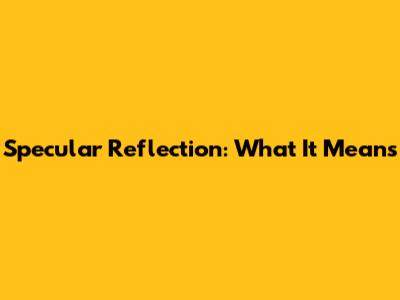 Specular Reflection: What It Means
