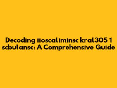 Given the structure of iioscaliminsc kral305 1 scbulansc, it's essential to consider various contexts where such a string might appear. Here are a few possibilities:
